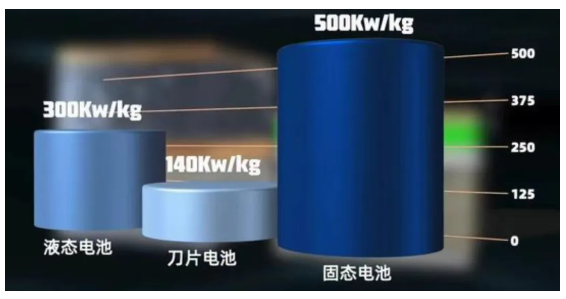 电池的能量密度指的是:单位体积或单位重量的电池所储存的电能。与液态电池和刀片电池相比,固态电池的能量密度最高。目前,锂电池的能量密度已经达到了较高的水平,但仍有进一步提高的空间,以进一步提高电池的续航能力。